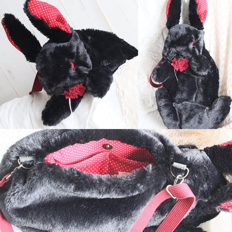 真っ赤なお目目のまるでかわいいデビルちゃん。たれ耳の黒うさぎバッグ【ふわサラファー】RSP-549-550-552