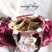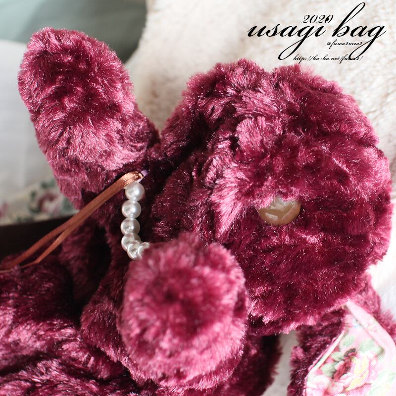 ワイン色の持ち手つきうさぎバッグ【ローズファー】RSP-470